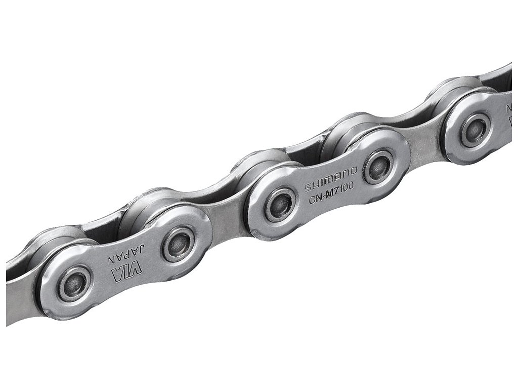 Shimano SLX CN-M7100 12-rychlostní řetěz je navržen pro plynulejší řazení a vyšší odolnost , iv náročném terénu. Díky rychlospojce SM-CN910-12 umožňuje snadnou montáž a demontáž .